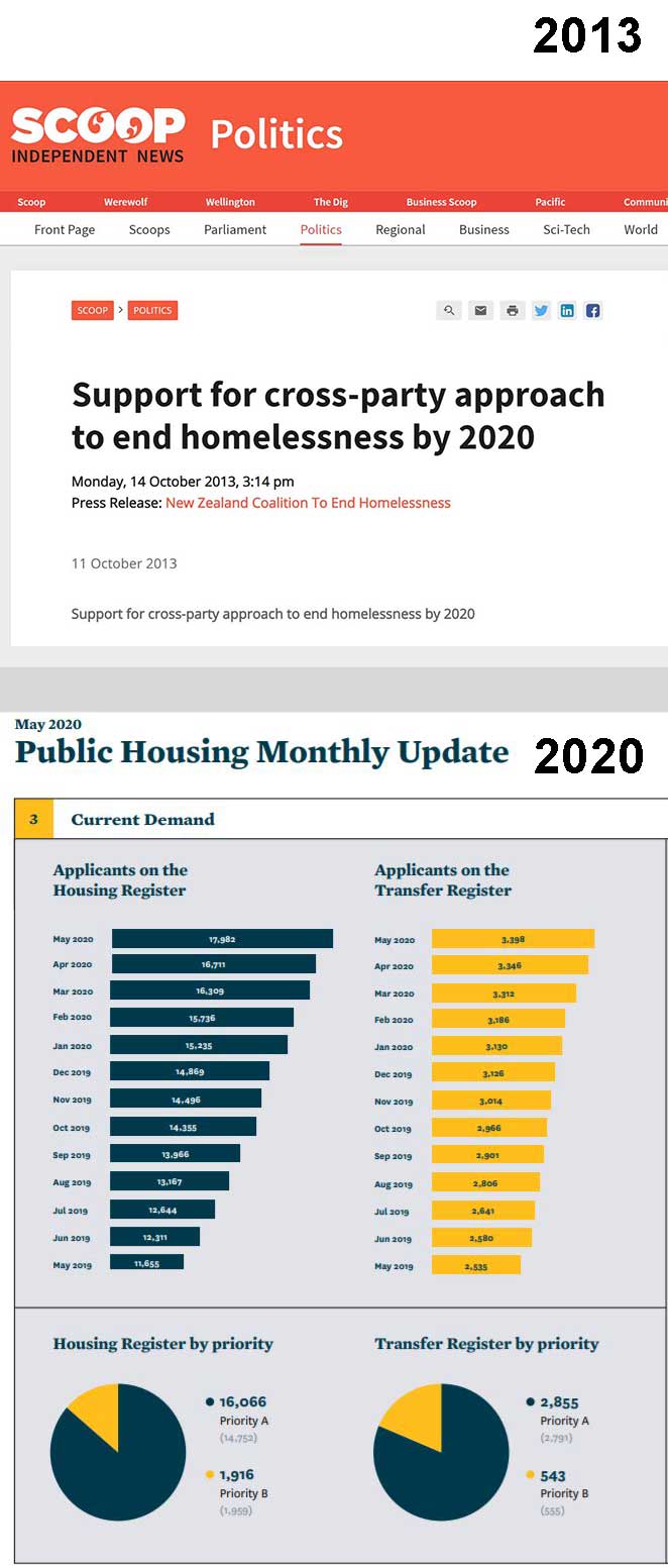 Economic and Social Research Aotearoa recently commented: “The need for public housing extends well beyond the waitlist to those who are in unaffordable and substandard private rentals, the working poor who are not eligible, and those who are otherwise eligible but have been deterred by the complicated nature of application process. If we take the definition of homelessness to include those living on the streets, in cars, on couches, in garages, and in overcrowded houses the homeless population extends well beyond this waitlist”